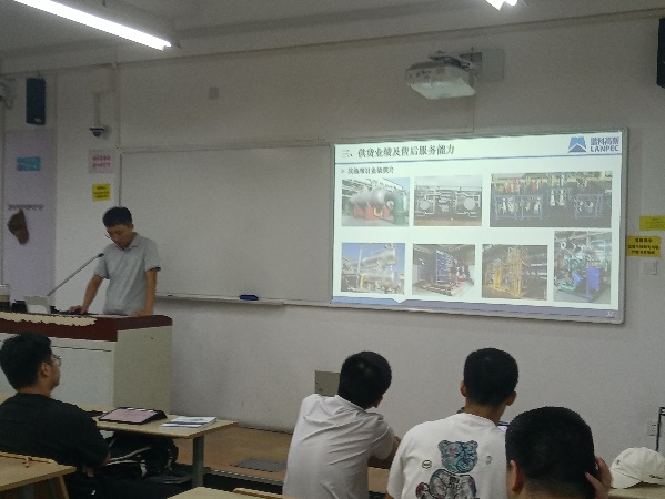 上海工程技术大学为了提高本科教学水平,实行产教融合和企业专家进课堂活动。在这些教学活动中,使学生的学习由过去的“让你学”向“我要学”的转变,本次企业专家进课堂,邀请蓝滨石化焊接工艺师,陈晶高级工程师为师生进行一堂很生动的教学活动。在本次教学活动中,陈老师首先介绍了企业的生产状况,然后结合实际案例来说明各种焊接电源在具体化工设备中的应用情况,教学内容非常丰富。