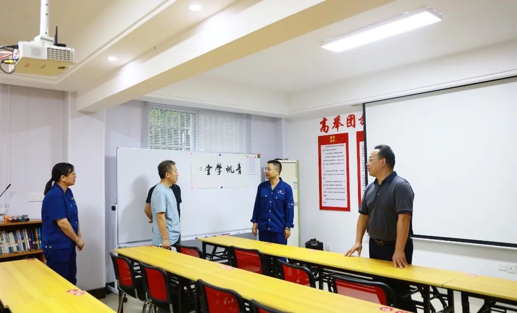 随后,郑祚双一行来到青帆学堂进行实地参观,了解青帆学堂教学设施配套情况。