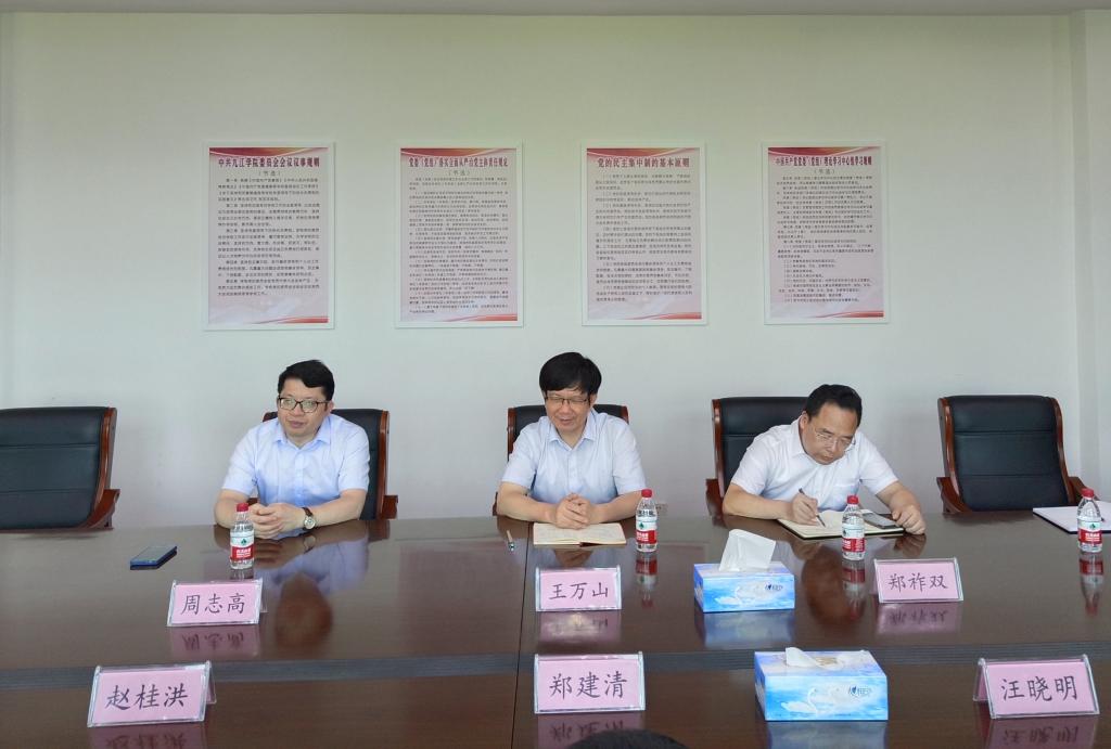 6月26日下午,江铜集团城门山铜矿党委书记郑建清、矿长赵桂洪一行来今年会官网调研,副校长王万山及今年会jinnianhuicom、外国语学院负责同志参加调研会。